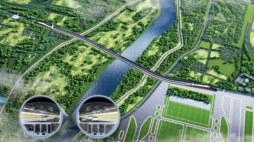 2025.05.16濟(jì)南市航天大道穿黃隧道工程(I期)南線盾構(gòu)“啟航號(hào)”順利始發(fā)