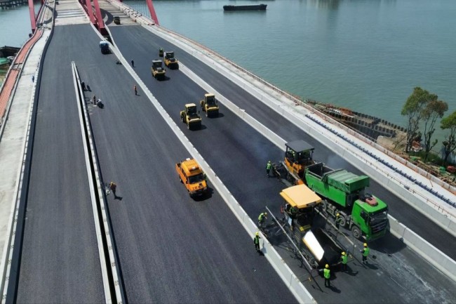 集團蘇州勝浦大橋項目順利完成主橋面層瀝青攤鋪工作