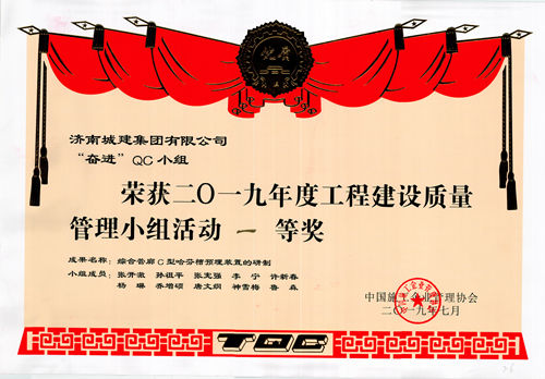 集團“奮進”QC小組榮獲“2019年度工程建設質量管理小組一等獎”