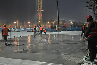 科學(xué)指揮,甘于奉獻彰顯“鐵軍精神”。澆筑過程中,項目管理人員輪班值守,緊盯現(xiàn)場,對每一道關(guān)鍵工序、每一個重要環(huán)節(jié)進行嚴格把控,不放過任何可能影響施工質(zhì)量的因素。在鋼筋特別密集的鋼板墻、型鋼節(jié)點部位,采用“1+1”盯防模式,即1個固定崗+1個流動哨,杜絕漏振情況。同時,考慮到冬季施工的特殊環(huán)境,項目部積極落實各項保溫措施,從原材料加熱、混凝土運輸保溫到澆筑后的養(yǎng)護,嚴格遵循冬季施工規(guī)范,確保混凝土的施工質(zhì)量。