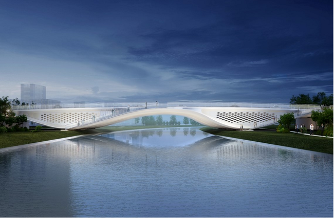 濟(jì)南新舊動(dòng)能轉(zhuǎn)換先行區(qū)橫二路大寺河橋梁段由世界著名橋梁設(shè)計(jì)師Marc MIMRAM先生主設(shè)計(jì),橋梁工程結(jié)構(gòu)為三跨梁拱組合鋼結(jié)構(gòu),全長418米,工程造價(jià)1.4億元,橋梁段長150.16米,采用鋼結(jié)構(gòu)梁拱組合體系一跨跨越大寺河,鋼結(jié)構(gòu)總鋼材用量約4197噸。項(xiàng)目融合泉城文化與太極元素,以“泉與太極”為設(shè)計(jì)理念,兼具功能性與藝術(shù)性。作為先行區(qū)核心景觀地標(biāo),橋梁的建成拓展了城市發(fā)展空間,推動(dòng)濟(jì)南從“大明湖時(shí)代”邁向“黃河時(shí)代”,為起步區(qū)高質(zhì)量發(fā)展注入強(qiáng)勁動(dòng)能。