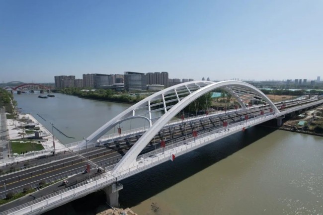 揚州二里橋路跨京杭運河工程是連接老城區(qū)與新城市中心商務區(qū)的重要分流通道。項目部以黨建聚力、科技賦能,組織青年突擊隊保障總重量超5000噸的主橋鋼結(jié)構(gòu)頂推安全。面對臨時墩單點集中荷載最大1138噸,突擊隊員嚴控支架穩(wěn)定,每日觀測沉降,確保頂推順利完成。同時,克服梅雨及高溫影響,20余天完成鋼結(jié)構(gòu)系梁吊裝,應用“免鑿毛止?jié){帶”“自動化噴淋臺車”“Cooker保溫車”等工藝優(yōu)化資源,提升質(zhì)量。工程通車后,高效承擔路網(wǎng)銜接轉(zhuǎn)換功能,顯著分流老城與新城核心區(qū)交通壓力,為帶動運河兩岸的基礎建設及經(jīng)濟發(fā)展提供強力交通支撐。