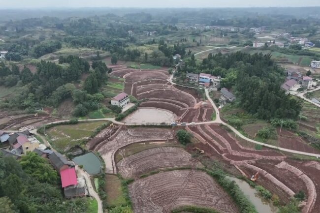 四川內江東興區2025年高標準農田項目全速推進田塊整治與灌排設施鋪設